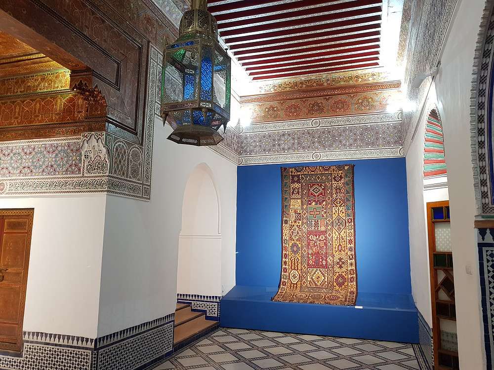 Walking through one of the colorful streets towards the other side of the souks where the last Museum to be visited is located .We are in Dar El Pasha Museum named recently as Musee de confluences .Morocco being a land of tolerance between religions and a country where all races and tribes cohabitate and live together peacefully , makes a visit of this jewel a must see.